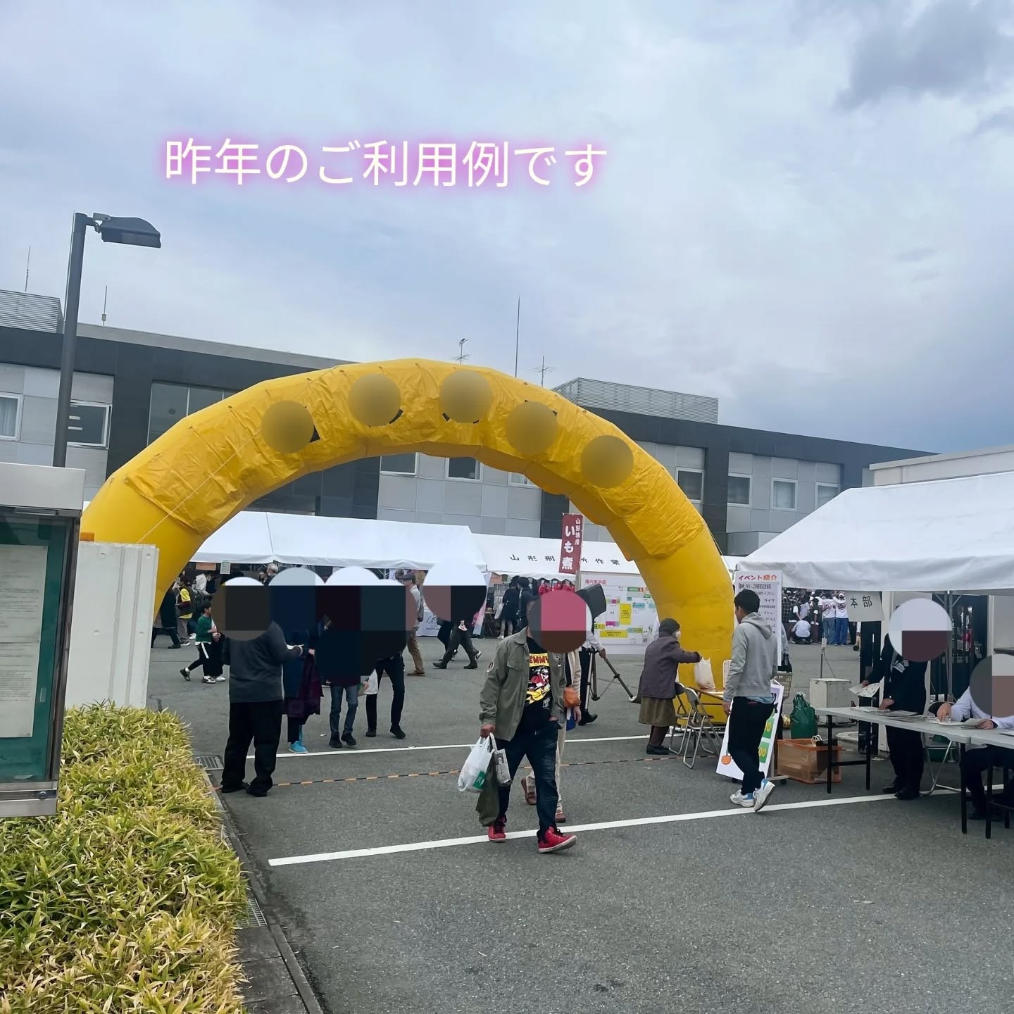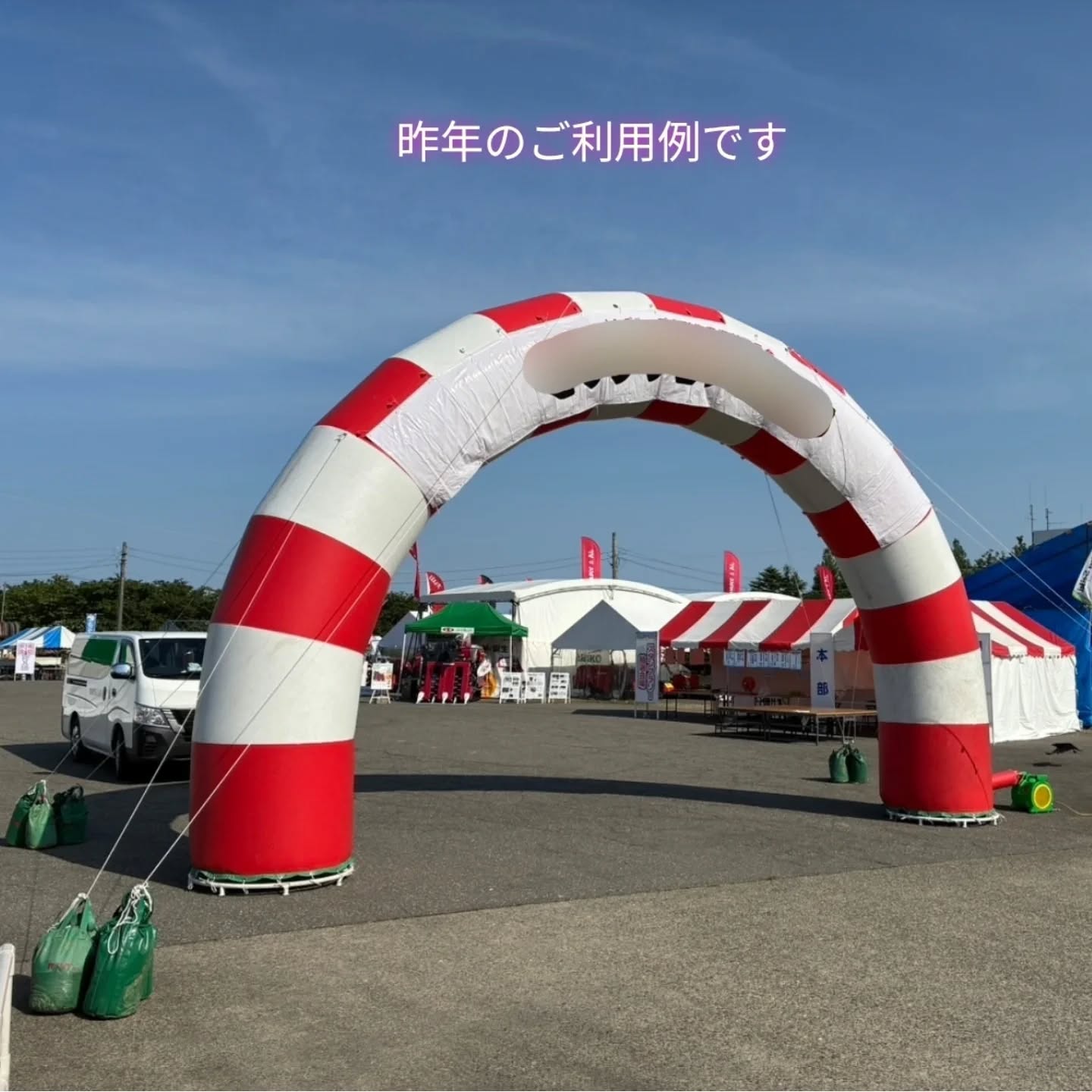 🪣整備中……🪣 エアーアーチを整備しています🫡 イベントのアイキャッチに最適 2026 4/18 🪣整備中……🪣 エアーアーチを整備しています🫡 イベントのアイキャッチに最適 送風機は付属していますので電源の確保が必要に なります 色 黄色、赤白輪切り サイズ各種 ①外寸8m×高さ5m ②外寸7m×4.5m アーチ用の切文字印刷も承ります😀 お知らせ 過去のお知らせ