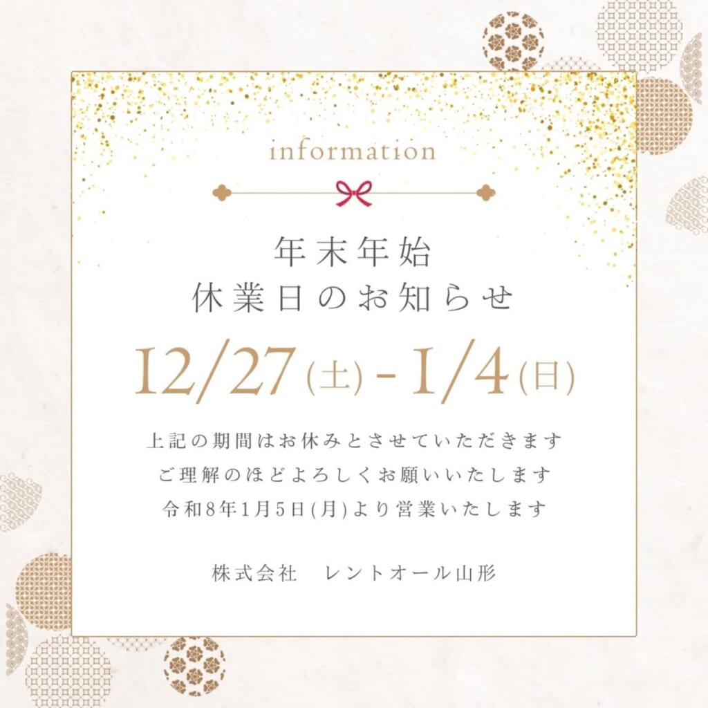 🏻年末年始休業のお知らせ🏻 12/27(土)〜1/4(日)まで年末年始休業とさせて いただきます